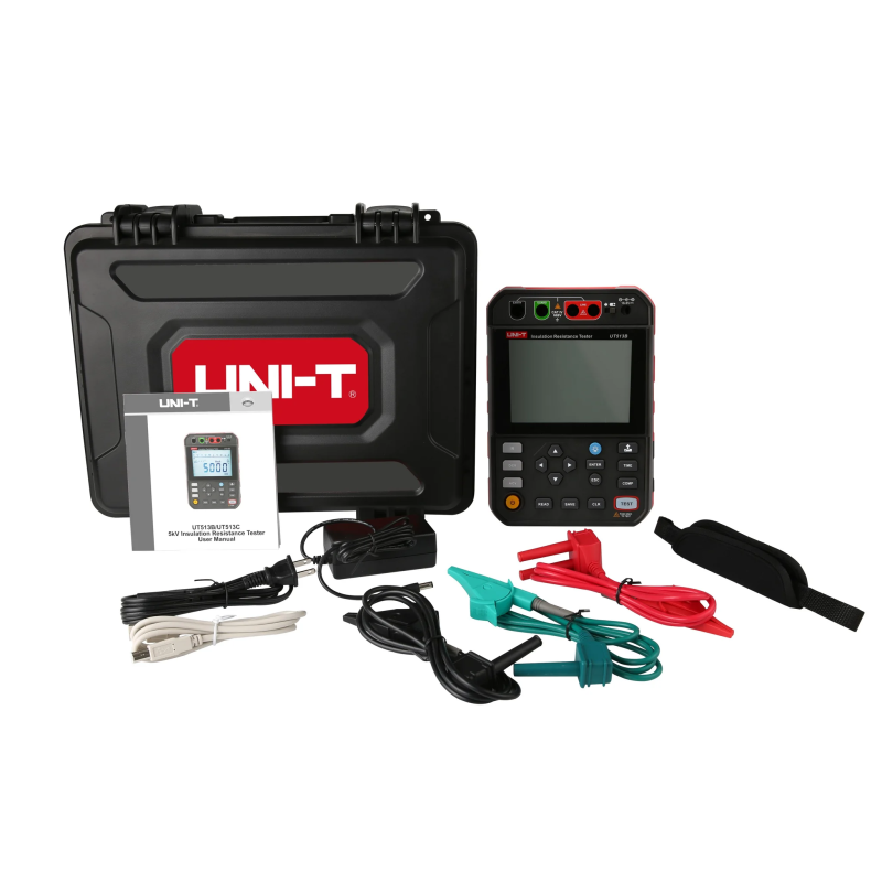 Výrobca: UNI-T UT 513B - merač izolačných odporov Popis: merací rozsah 0.25MΩ~2TΩ, testovacie napätie až 5000V, USB pre pripojenie k PC Funkcie: priebežné meranie + časové meranie, polarizačný index PI, dielektrická absorpcia DAR, porovnávanie, stupňovanie (krokovanie) testovacieho napätia. Trieda: CAT IV 600V
