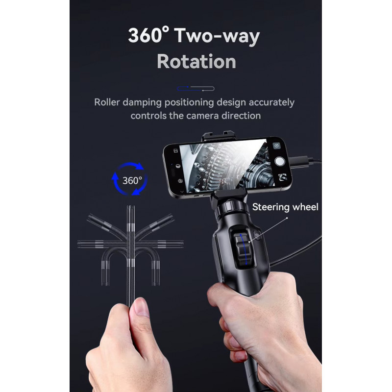 Obojsmerný 360° kĺbový spoj – plná kontrola nad uhlom pohľadu vďaka flexibilnej sonde s možnosťou ovládania smeru otáčania.