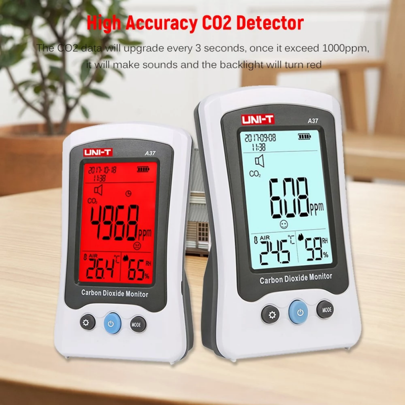 Merač kvality vzduchu A37 dokáže monitorovať koncentráciu oxidu uhličitého v okolitom ovzduší.