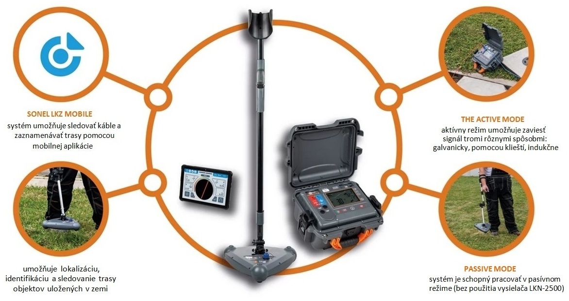 Vysielač LKN-2500 pošle signál do podzemného objektu. Detektor LKD-2500 tento signál sleduje a pomáha nájsť, kadiaľ objekt vedie. Poloha sa zobrazuje v mobilnej aplikácii Sonel LKZ Mobile. Trasu je možné uložiť a zdieľať s ostatnými.