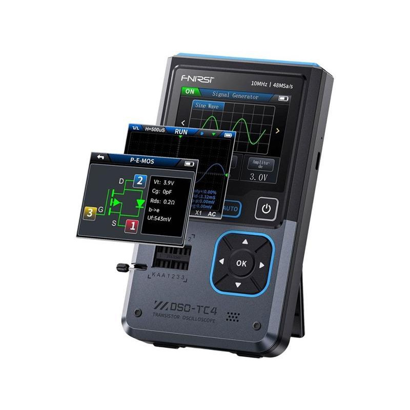 FNIRSI DSO-TC4 je ručný multifunkčný prístroj 3 v 1, ktorý kombinuje digitálny osciloskop, tester elektronických súčiastok a generátor signálov DDS. V porovnaní so svojím predchodcom (DSO-TC3) ponúka výrazne vyšší výkon, najmä v režime osciloskopu, kde sa šírka pásma zvýšila z 500 kHz na 10 MHz. DSO-TC4 je ideálnou voľbou pre začiatočníkov, študentov a technikov, ktorí hľadajú prenosný, cenovo dostupný prístroj na základné merania, pri ktorých sa nevyžaduje laboratórna presnosť špičkových stolových prístrojov.