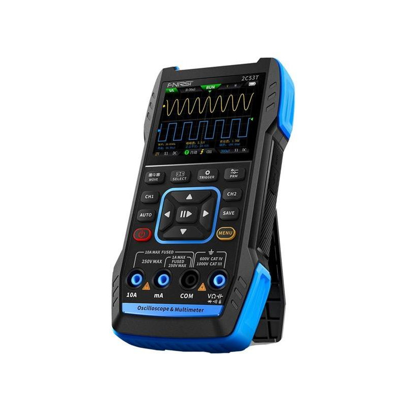 Osciloskop, funkčný generátor a multimeter FNIRSI 2C53T 50 MHz integruje funkcie osciloskopu, multimetra a generátora signálov v jednom prístroji. Táto všestrannosť šetrí miesto, čas a náklady, čím sa stáva veľmi praktickým nástrojom pre profesionálov a hobby používateľov. Vysoko výkonný osciloskop v kompaktnom prevedení so šírkou pásma 50 MHz, vzorkovacou frekvenciou 250 MS/s a pokročilými funkciami, ako je analýza FFT, matematické operácie a meranie kurzora, FNIRSI 2C53T ponúka funkcie bežné vo väčších stolových zariadeniach, ale v prenosnom a ľahkom formáte. Pokročilé funkcie generátora signálov, podporujúce 13 typov priebehov s maximálnou frekvenciou 50 kH v krokoch po 1 Hz, ponúkajú široké možnosti testovania a simulácie elektronických obvodov, čo nie je bežné u väčšiny prenosných osciloskopov.