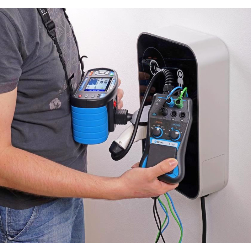 Zostava prístroja EurotestXC MI 3152 a adaptéra A1532 je ideálnym riešením pre kontrolu elektrickej bezpečnosti a funkčných skúšok nabíjacích zariadení typu EVSE pre elektromobily.