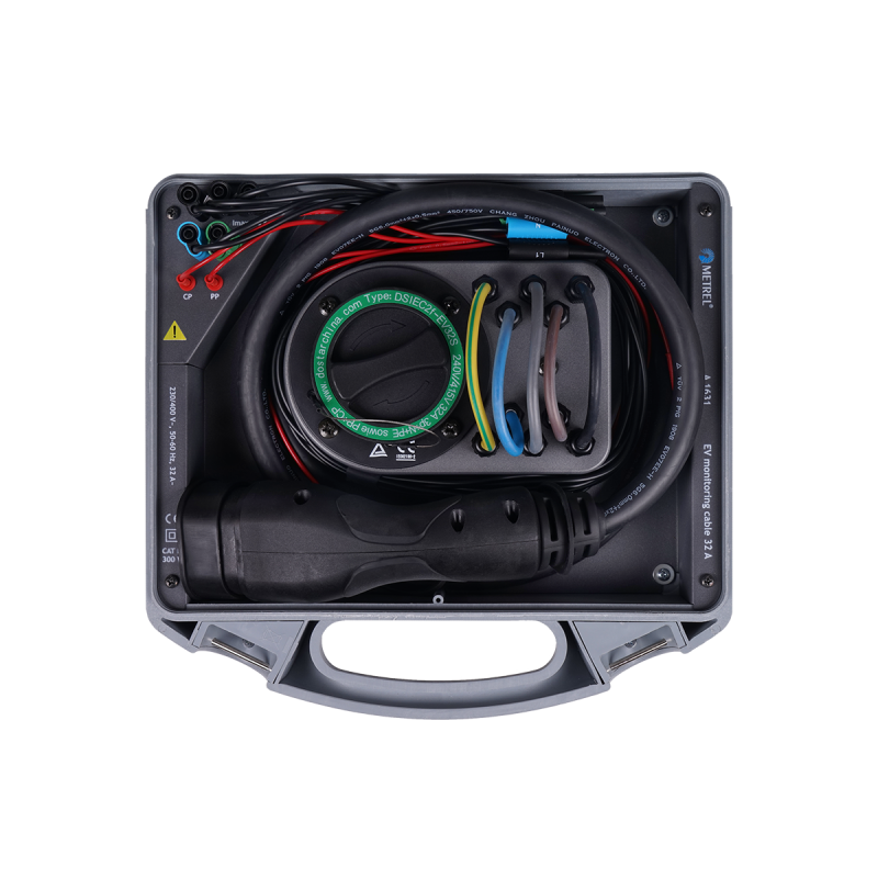 monitorovanie CP signálu, prúdu a napätia počas nabíjania elektrického vozidla (EV) v kombinácii s podporovanými analyzérmi a adaptérmi Metrel.
