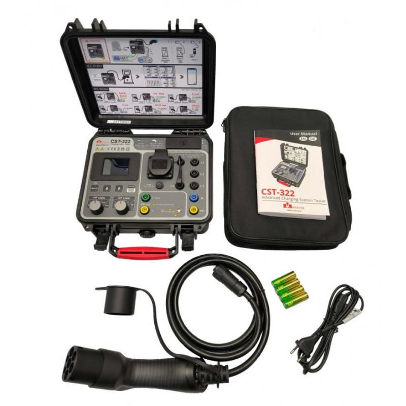 Analyzátor CST-322 je ideálny pre rýchle a bezpečné testovanie AC dobíjacích staníc elektromobilov s konektormi typu 2.