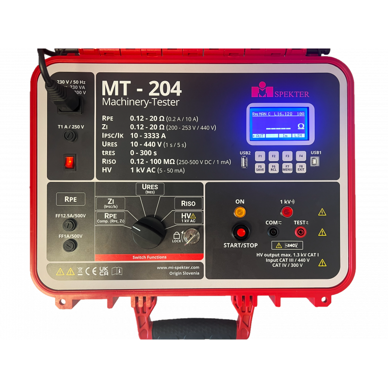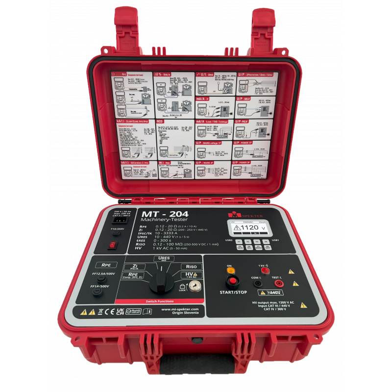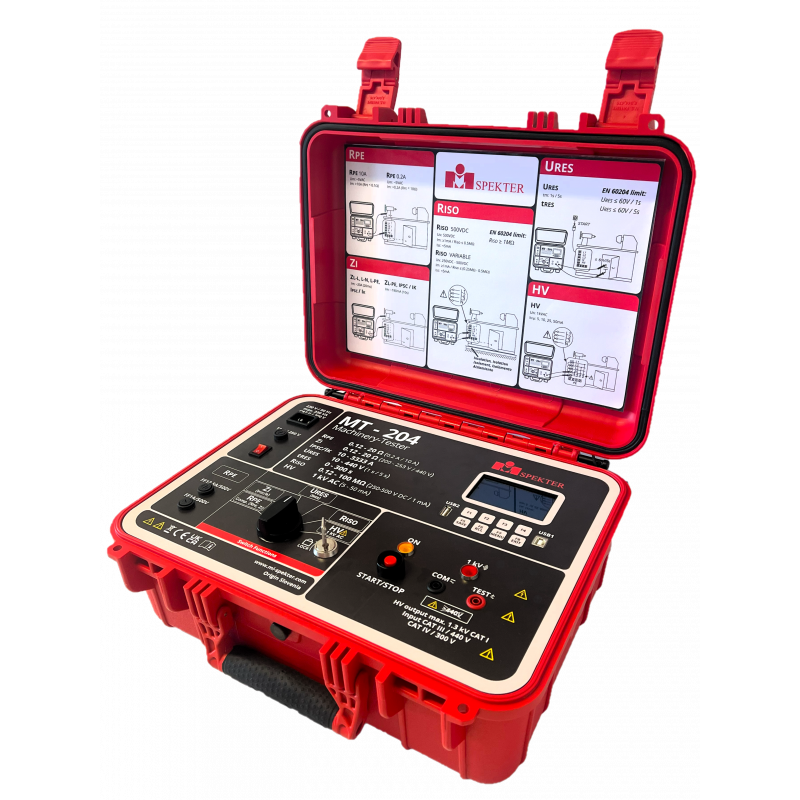 Mi Spekter MT-204 je ideálny na testovanie elektrickej bezpečnosti ručného náradia, spotrebičov, strojov a strojového zariadenia. Umožňuje jednoduchú a spoľahlivú kontrolu, certifikáciu a pravidelnú údržbu zariadení, vrátane periodických revízií.