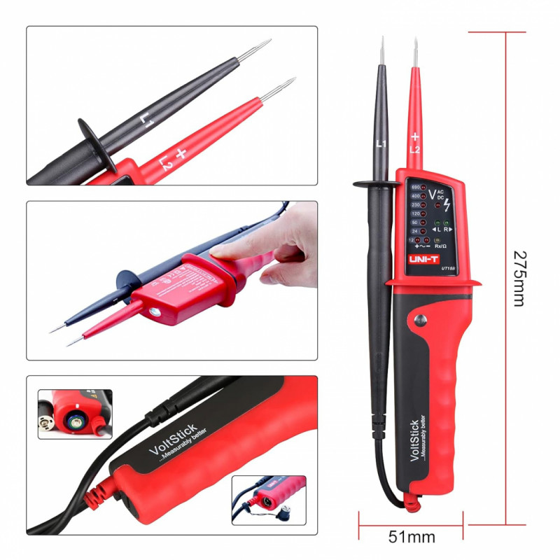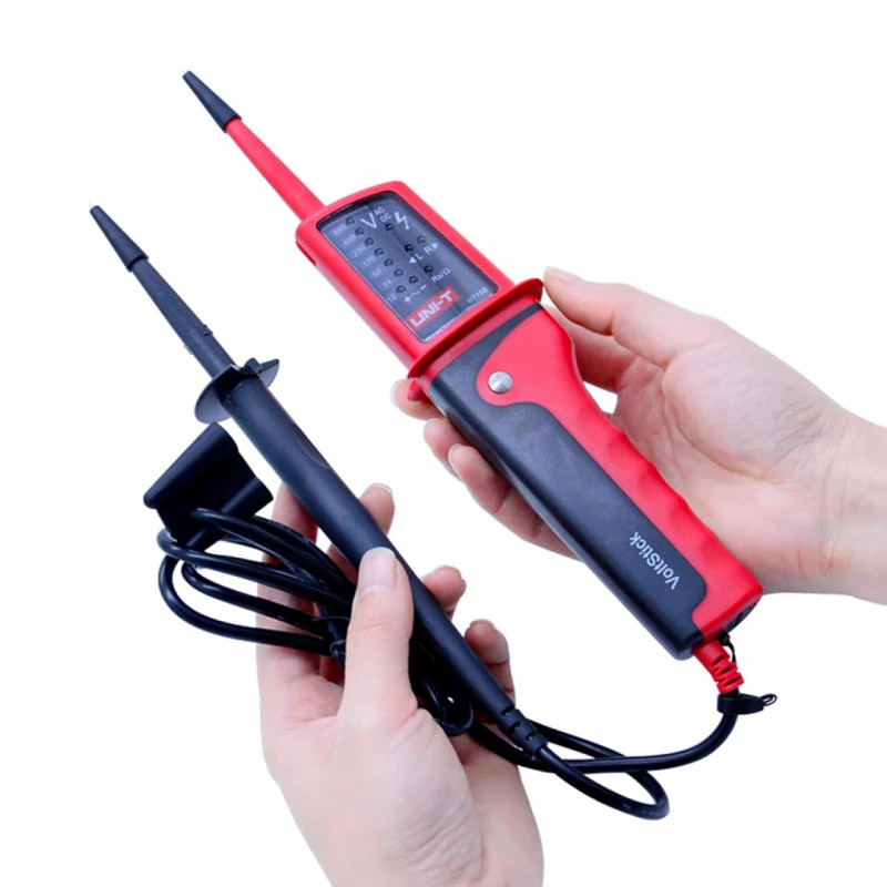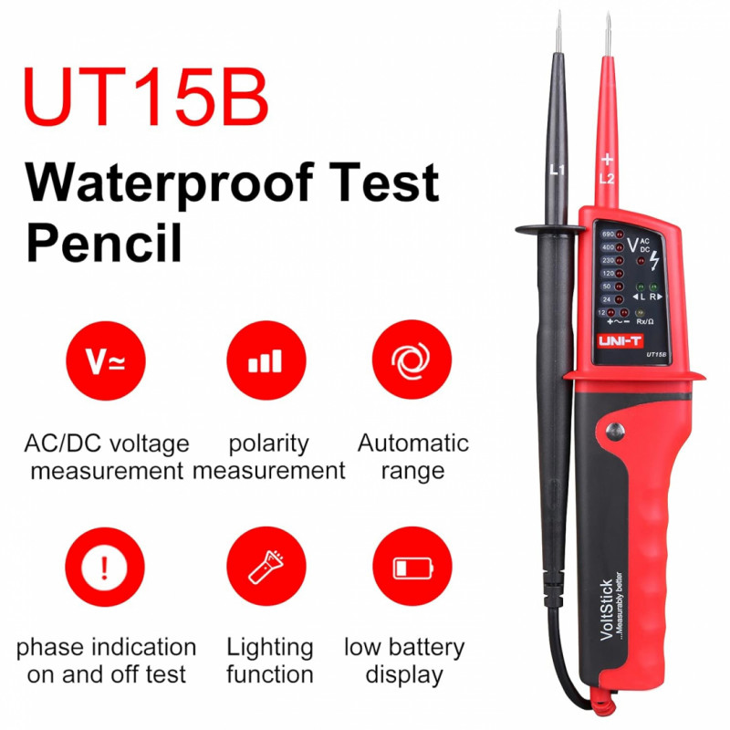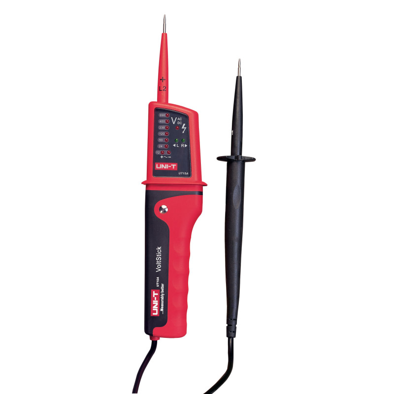 Napäťová skúšačka UT15B od spoločnosti UNI-Trend je praktický prístroj pre efektívnu a bezpečnú prácu. Robustné vyhotovenie, kvalitné materiály a viaceré funkcie predurčujú tento prístroj aj na profesionálne použitie.